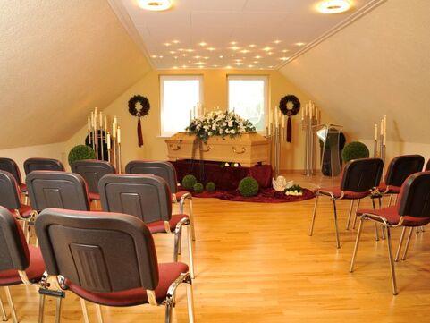 Dafür wird dieser Raum ausgestaltet, der dann für die Zeit des Abschieds ganz auf den Verstorbenen abgestimmt wird.